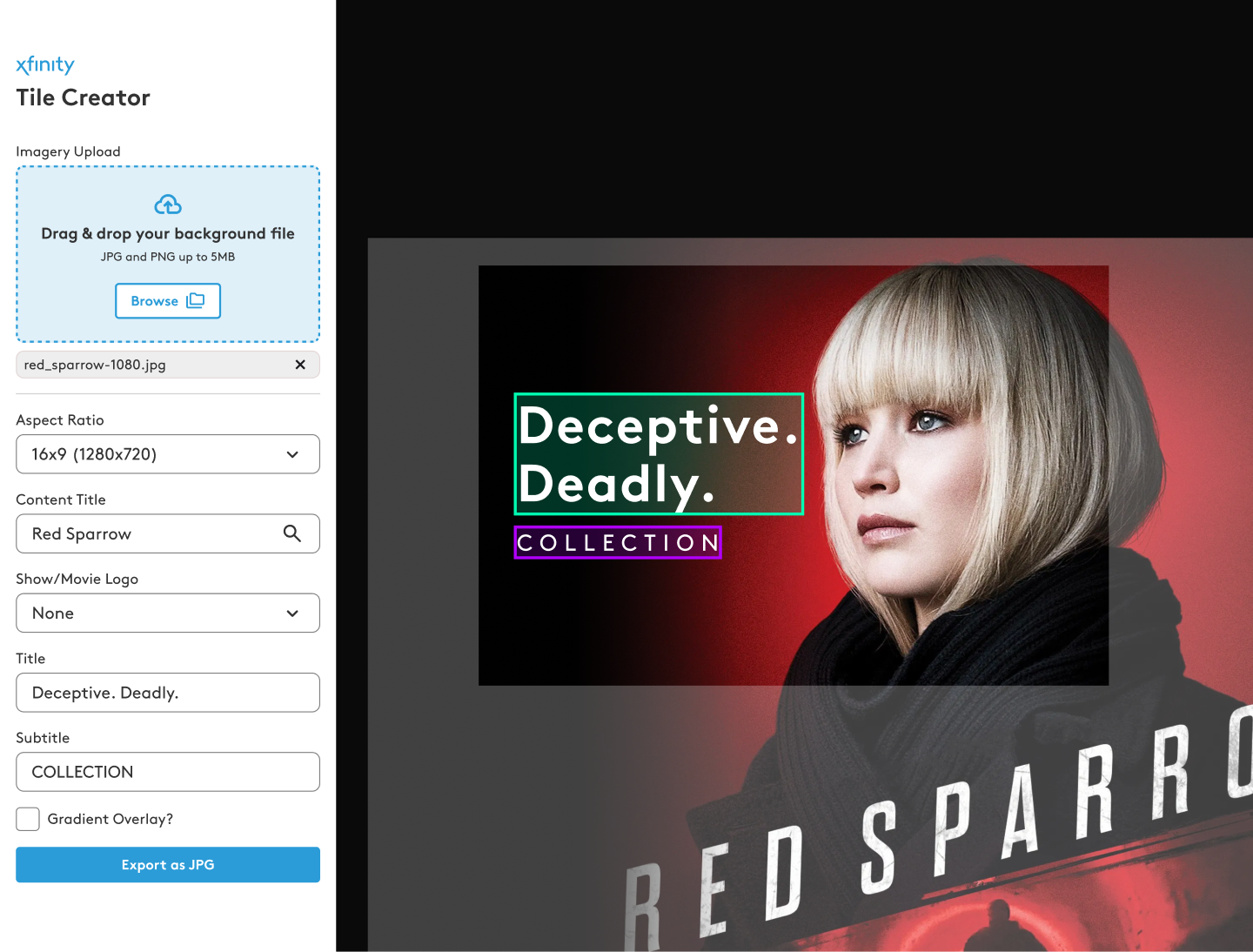 With just a few inputs — a background image, show logo, and customizable text fields — authors could quickly generate promotional assets in the correct aspect ratios and export them for upload. This not only cut down on production time but also helped democratize the creation process. The tool saved our team dozens of hours per week and allowed me to shift my focus toward larger brand initiatives and campaign development.